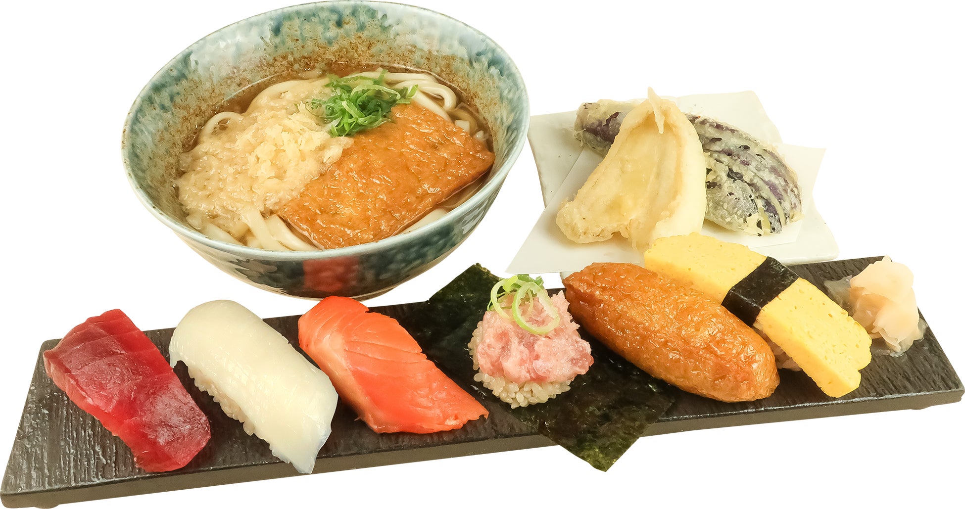 杉玉自慢の寿司6貫に、天ぷら2種とうどんがついたお得なランチ限定商品です。
