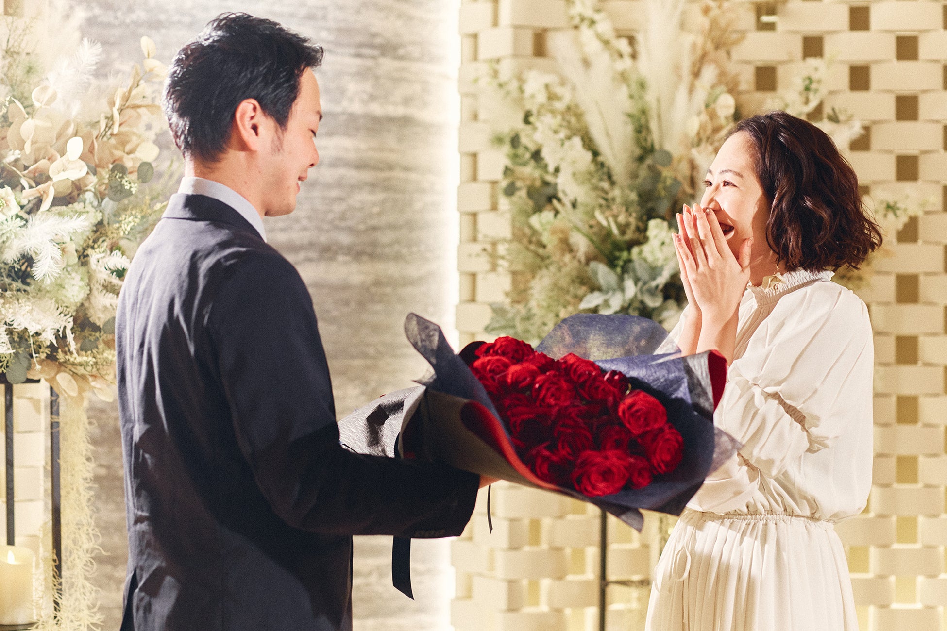 フレンチレストラン「ラ・プロヴァンス」、または「鉄板焼 匠」でのお食事後、キャンドルでライトアップされたロマンチックな雰囲気のチャペルで、「真実の愛」という意味を持つ21本の薔薇の花束を贈り、プロポーズしていただきます。