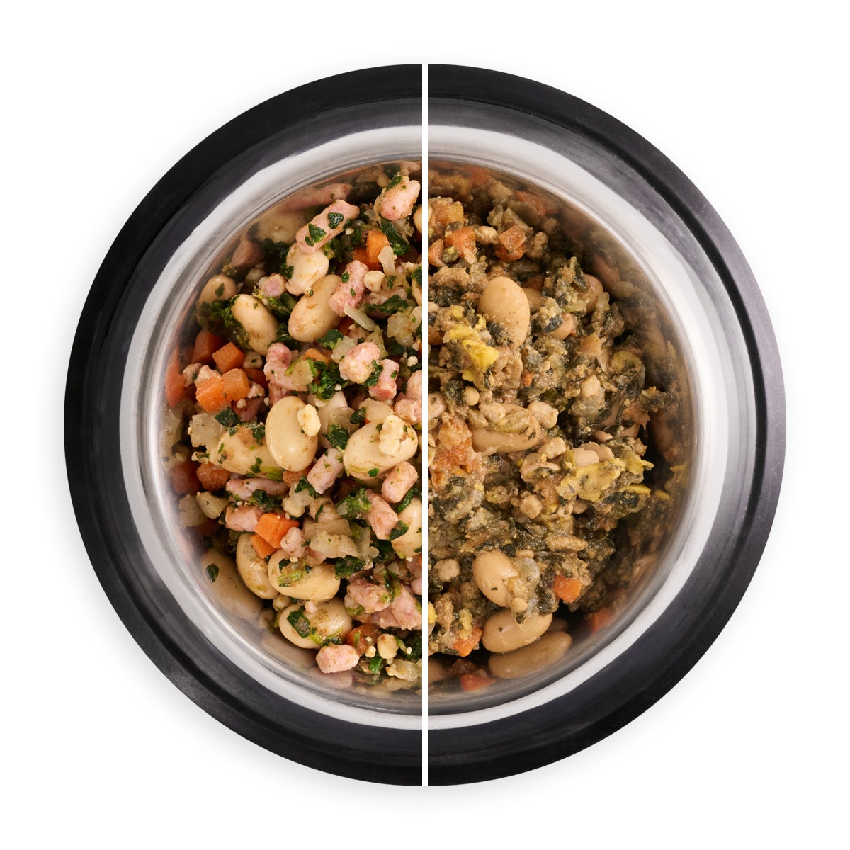 まるで人間の食事のようなバラエティに富んだ、総合栄養食5商品を含む約30種類のメニューをご用意しており、飼い主と愛犬が同じような食事を楽しむことで、家族団欒の時間をより豊かにお過ごしいただけます。