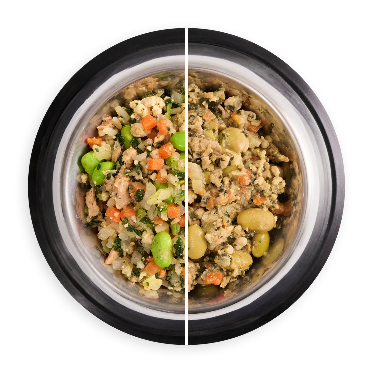 糖質と塩分に配慮した独自の栄養基準に基づき、すべてのメニューを自社工場で調理しています。ヒューマングレード(人間が食べられるレベルの品質)の食材を使用しており、まるで人の食事のように多彩でバラエティ豊かな商品を取り揃えています。
