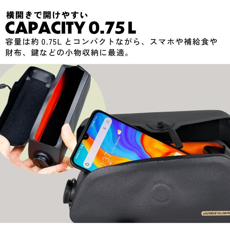 約0.75Lの容量は補給食や財布などの小物収納に最適です。
