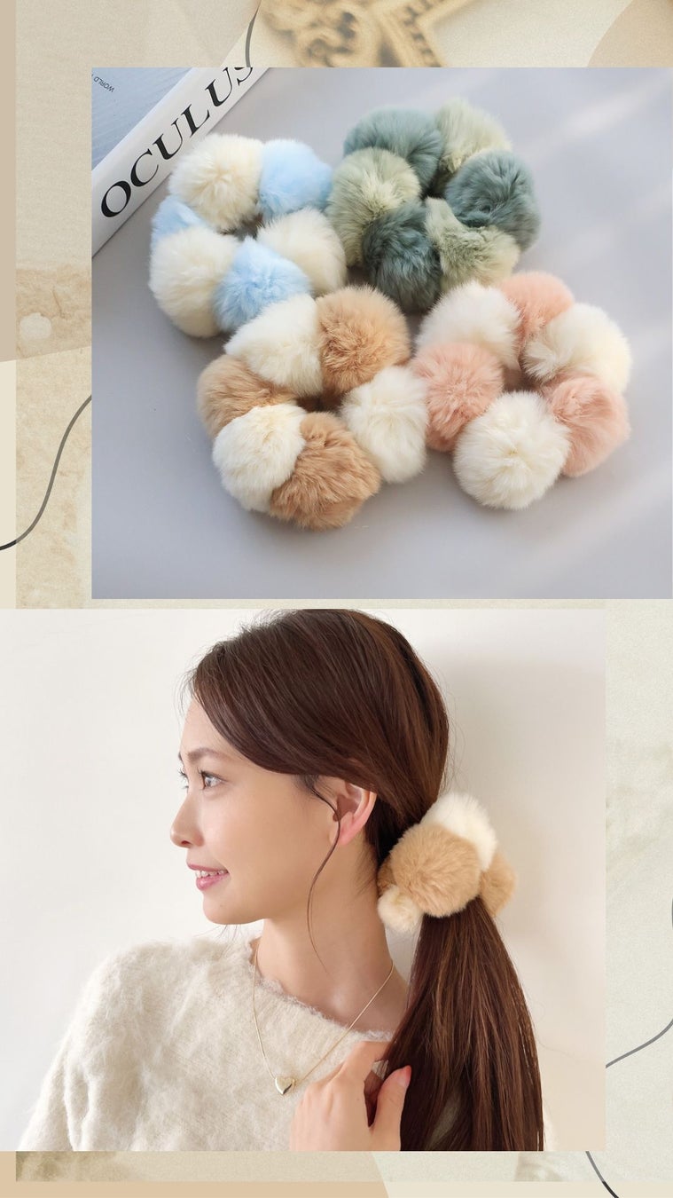 ふわふわした丸モチーフが連なったポンポンシュシュ。