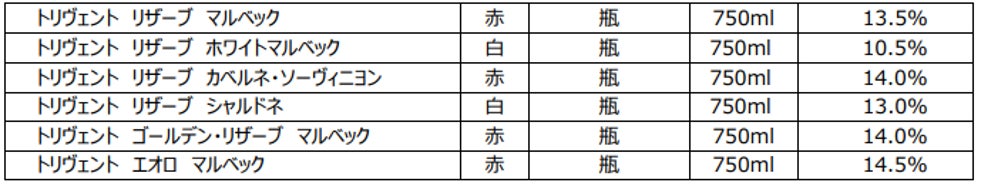 ・「トリヴェント リザーブ マルベック」、「トリヴェント リザーブ ホワイトマルベック」