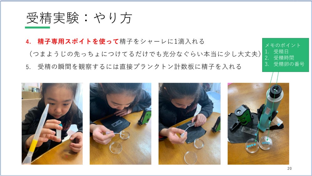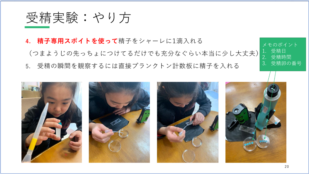 - ③ オンライン報告会では全国の参加者が「ウニの発生体験」によって繋がりました