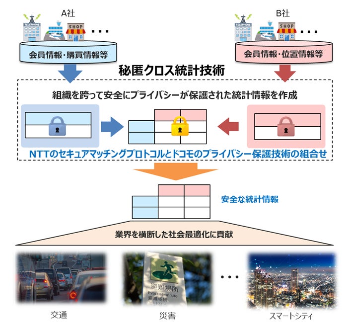 ドコモとNTTは、今後も秘匿クロス統計技術の研究開発により得られた成果を実用化につなげるこ