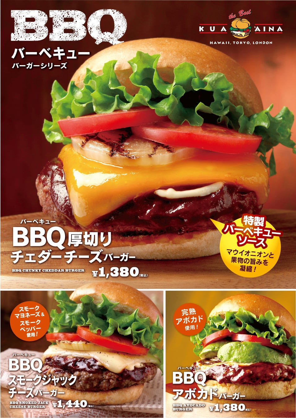 クア・アイナから特製BBQソースを使用したバーガー3種が今年も登場 大人気『BBQバーガーシリーズ』販売開始!!