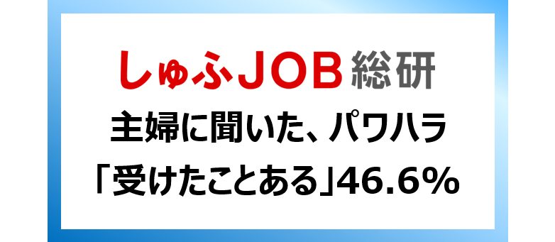 仕事と家庭の両立を希望する主婦・主夫層の実情や本音を探る調査機関『しゅふJOB総研』(運営会社:株式会社ビースタイル ホールディングス 本社:東京都新宿区、代表取締役:三原邦彦)は『ハラスメント』をテーマに主婦層を中心とする就労志向の女性にアンケート調査を行いましたので以下にご報告します。(有効回答数:684件)