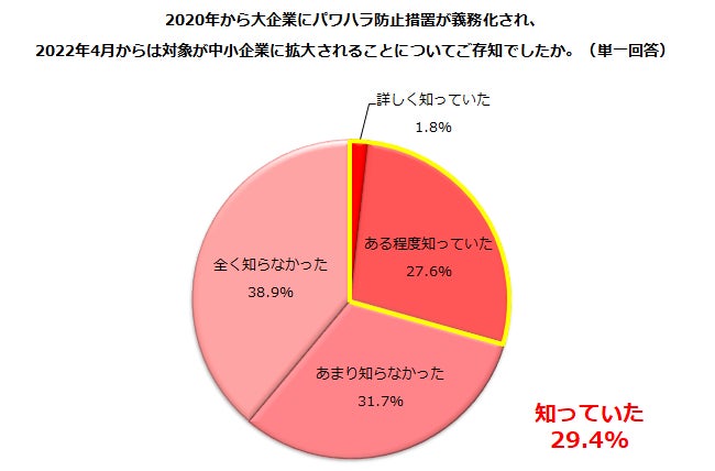 3.パワハラ防止措置の義務化について「知っていた」29.4%
