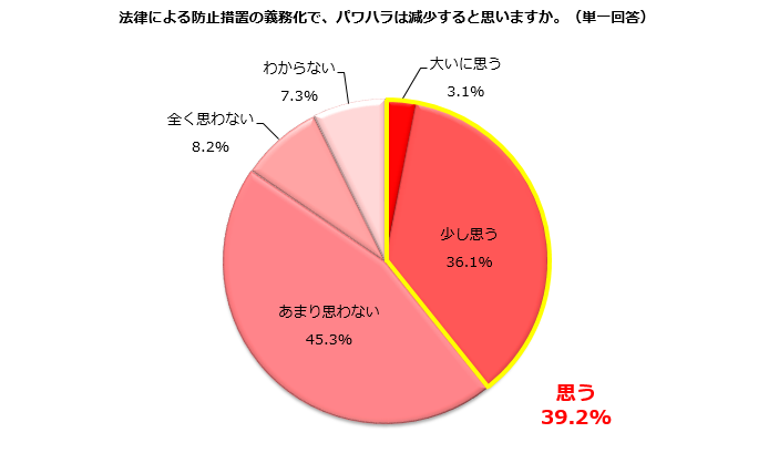 4.法律による防止措置の義務化でパワハラは減少すると「思う」39.2%