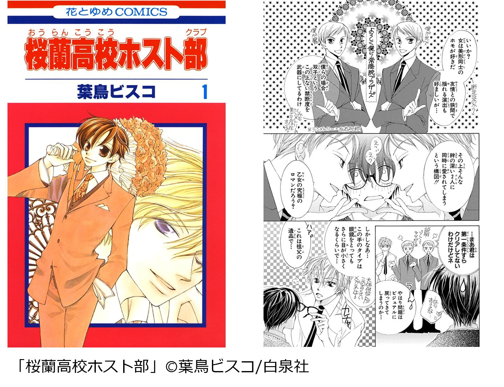 2006年にアニメ化、2011年にドラマ化を果たした、セレブな名門校「桜蘭高校」の「ホスト部」を舞台にした学園コメディ。