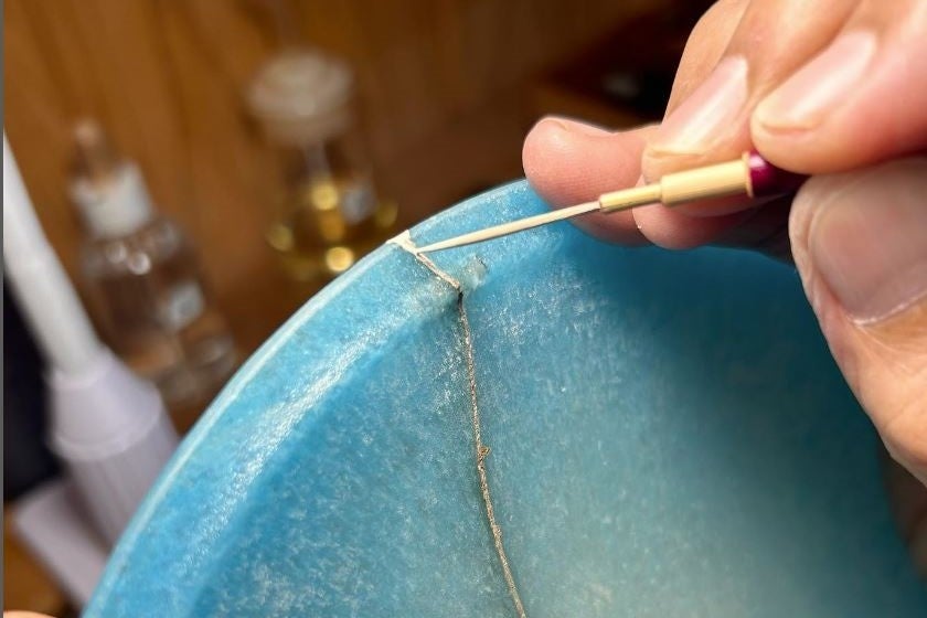 刺激の強い溶剤(VOC)や化学物質を使わず、つくる人・使う人・環境に優しい自然派金継を行う博多漆芸研究所より講師を招き、日本伝統技術の金継ぎを体験していただけます。お客様の思い出の品をお持ちいただき、自分の手で丁寧に繕う時間をお楽しみください。