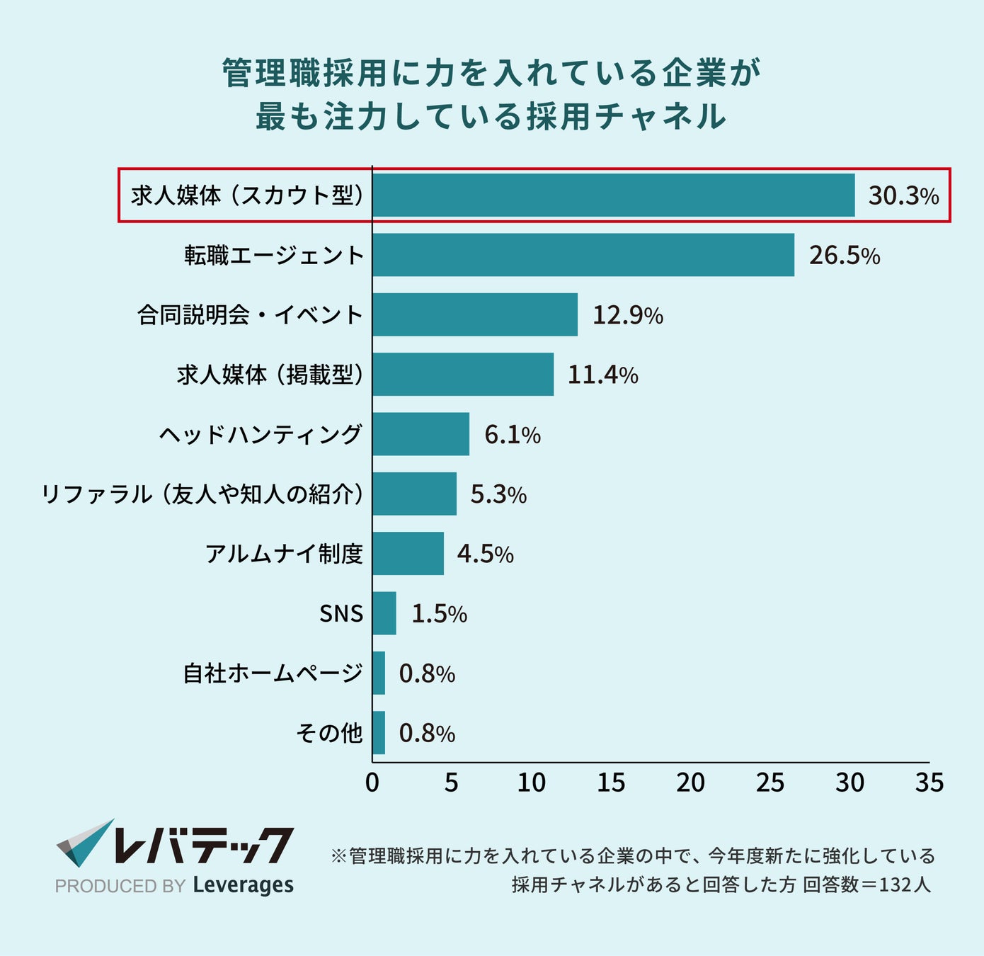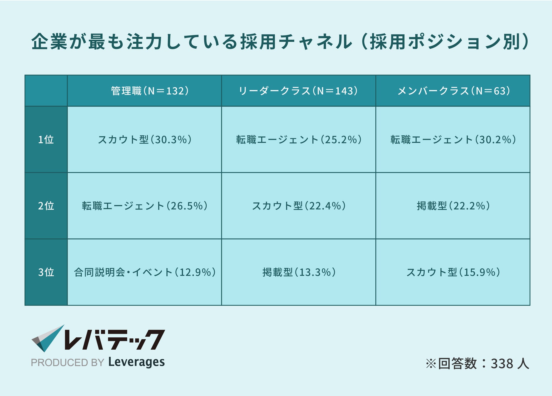 特に「管理職」を担うIT人材を重点的に採用している企業は、「スカウト型の求人媒体」に注力している傾向が見られます。管理職採用においては、応募を待つだけでなく、企業からの積極的なアプローチが必要になりそうです。