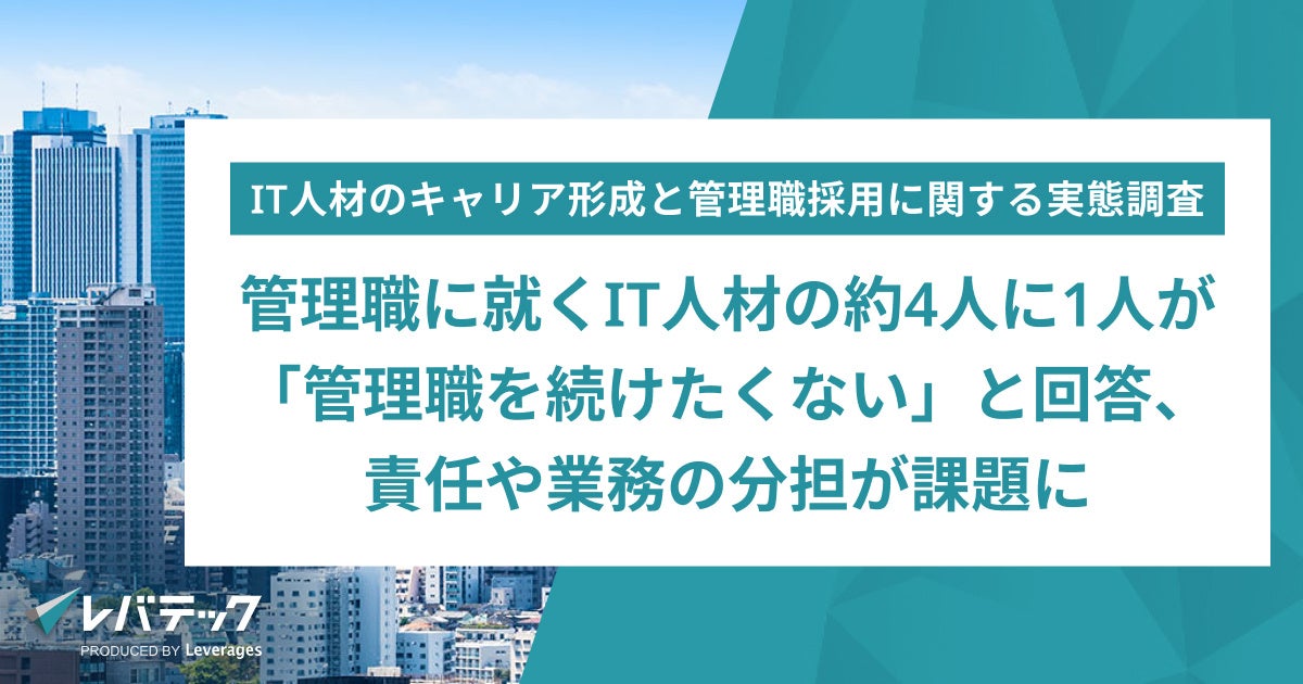 「日本を、IT先進国に。」をビジョンに掲げるレバテック株式会社( https://levtech.jp/ ) は、IT人材を採用する企業担当者1000名とIT人材3000名を対象に、管理職への意向や採用実態に関する調査を行いました。