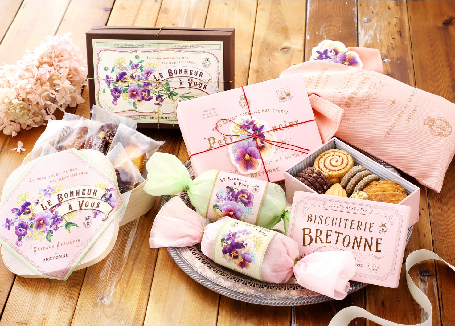 フランス・ブルターニュの美味しさをお届けする焼き菓子専門店「ビスキュイテリエ ブルトンヌ」(https://www.bretonne-bis.com/)では、「Le Bonheur à Vous ~幸せを運ぶ春の焼き菓子~」をテーマに、良質なバターの風味にショコラやベリーなどを合わせた春限定の焼き菓子やクッキー缶、すみれやビオラなどのお花のブーケのパッケージが華やかなアソートギフトなどバラエティ豊かに展開いたします。ギフト商品は 2 月15 日(火)より、焼き立て商品は 3 月1日(火)より順次販売開始します。(※焼き立て商品は店舗のみ)