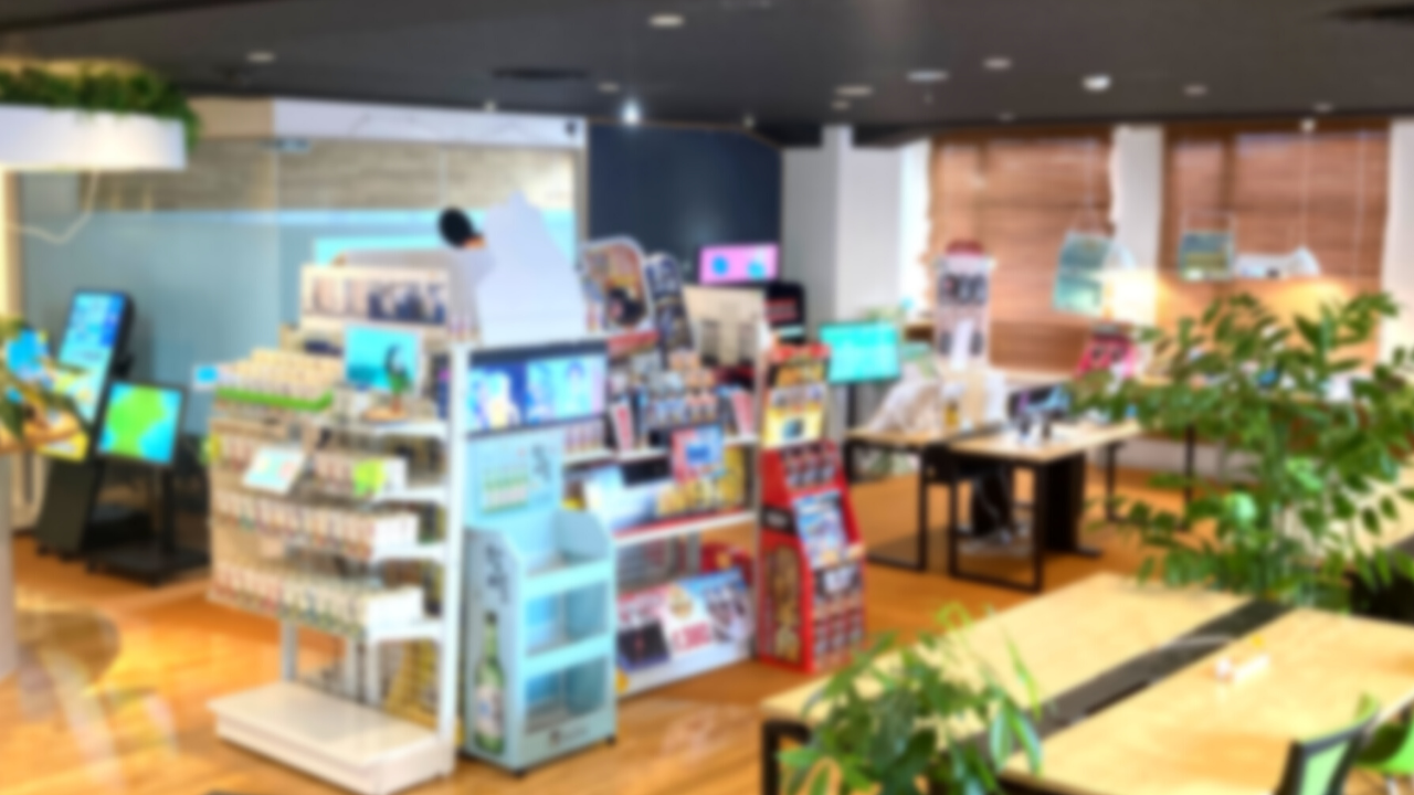 このような背景から、実際の売場でどのように販促プロモーションが行われているのかをご覧いただけるよう、渋谷本社オフィスのミニショールームをリニューアルいたしました。疑似売場を構築し、実際に売場で使用されている販促ツールに触れながら施策を考えることができ、 「SDGs販促」 の世界観を表現した体感型ミニショールームです。900mmゴンドラに商品、サイネージ、POPなどを設置し、実際の売場を再現するとともに、オンラインサイネージのデモ配信やセンサーを活用した製品など、様々な製品や事例を取り揃えて展示しております。