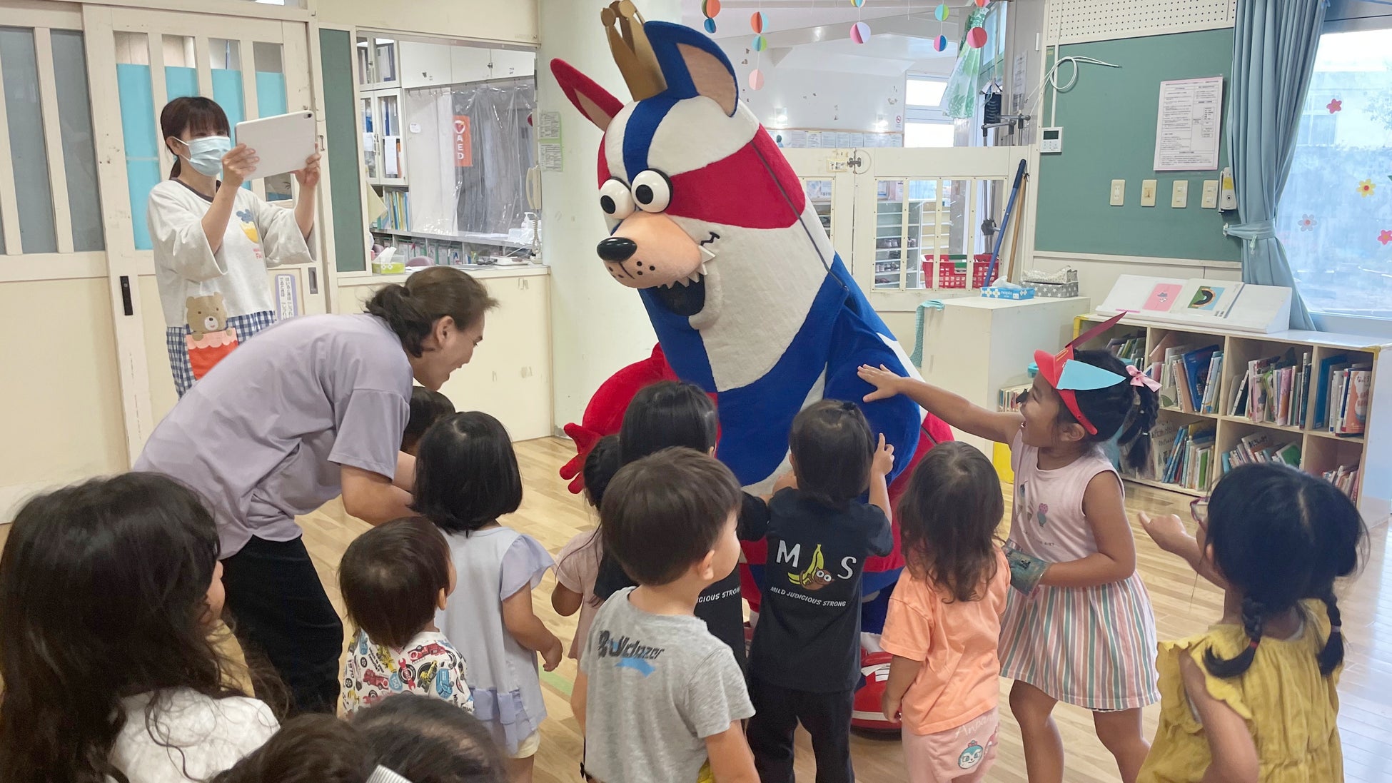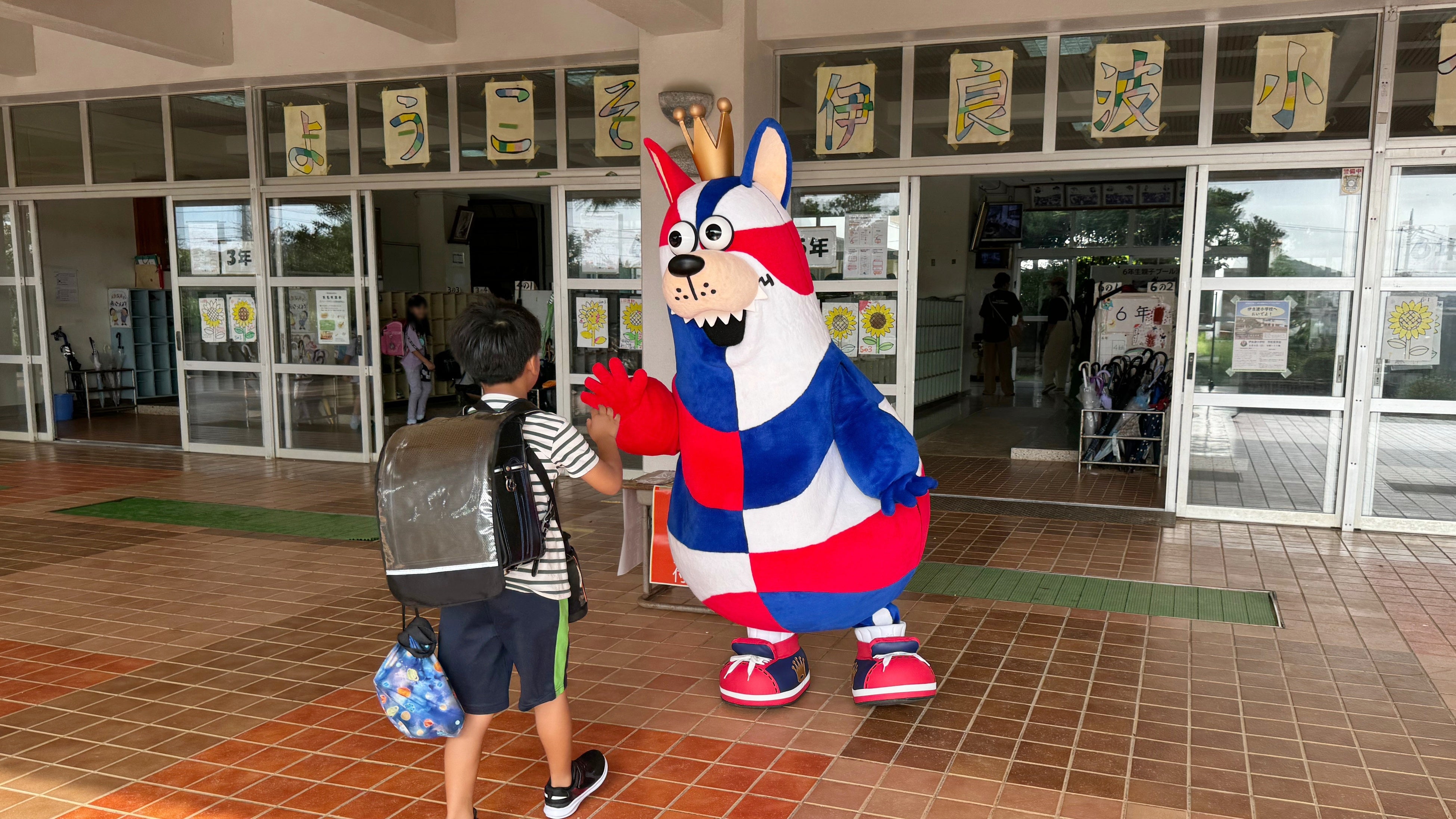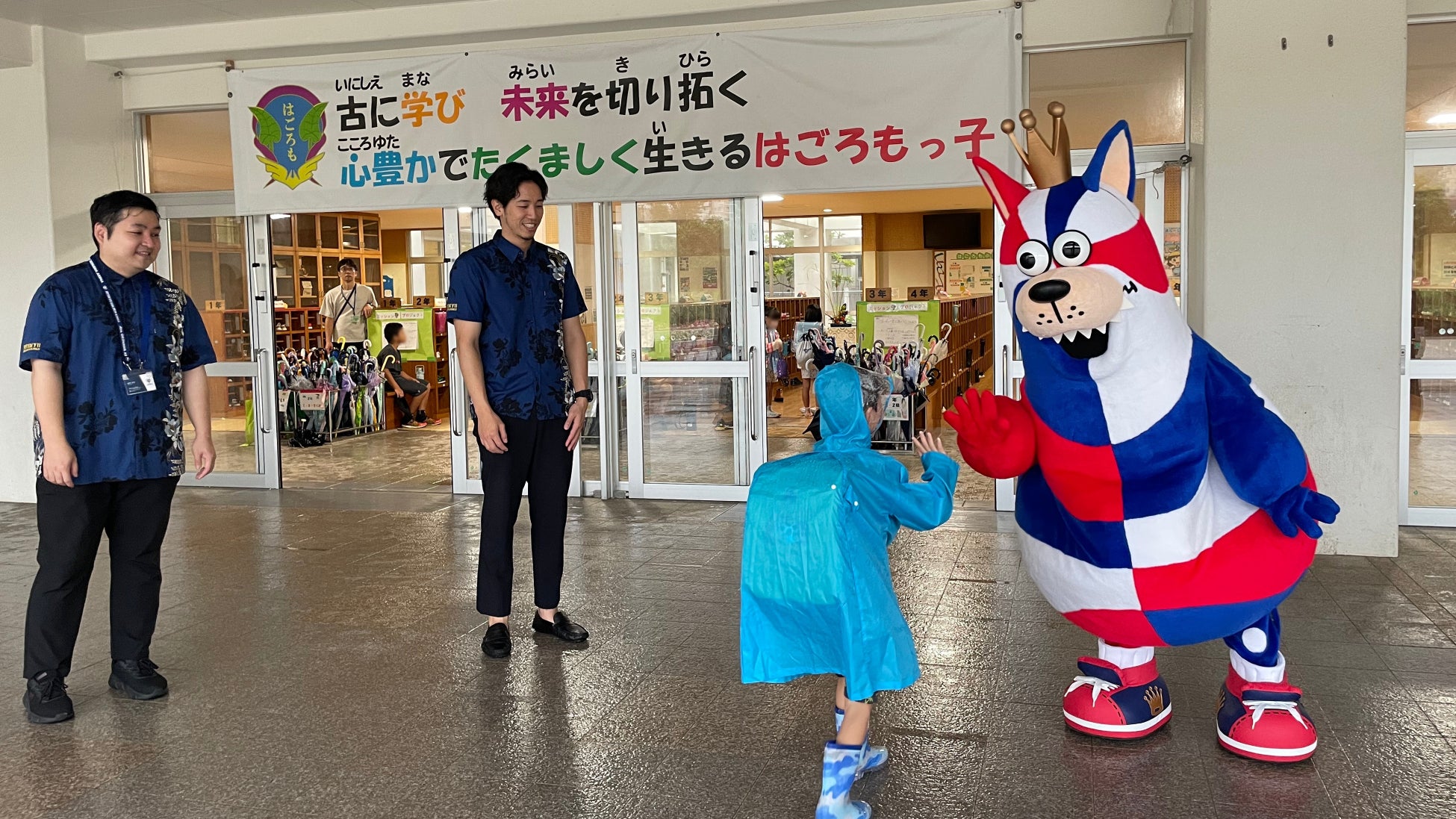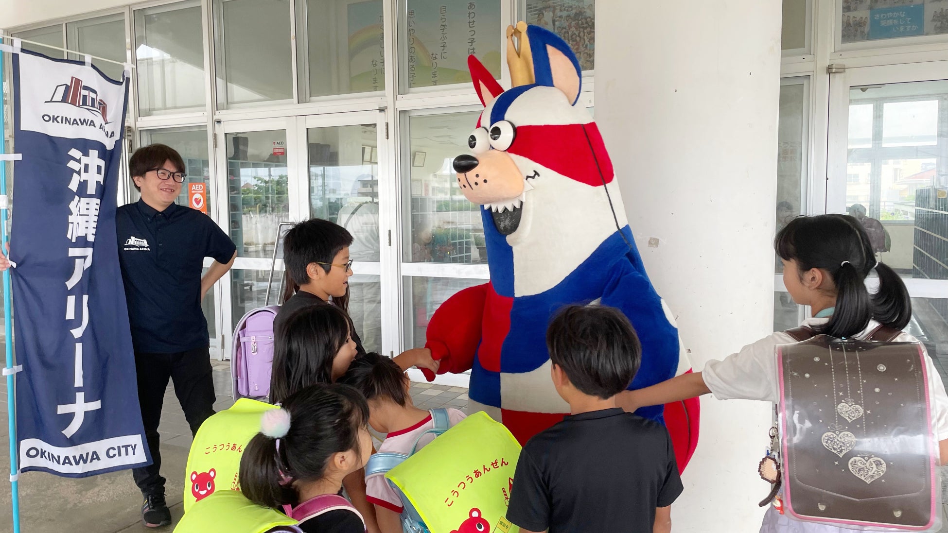 「おおきなわ」の活動の一環として行なっている「ゴーディーによる朝のあいさつ運動」で、6月はホームタウン沖縄市、宜野湾市、豊見城市、嘉手納町の保育園、小中学校にてあいさつ運動に参加しました。ご協力いただいた各小中学校の皆さま、ありがとうございました。