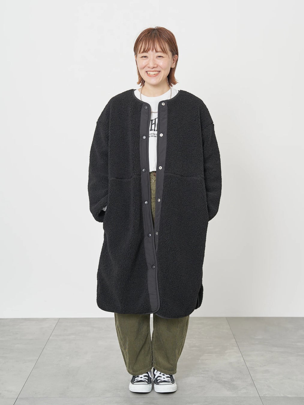 150cm前後の方がバランス良く着られるよう、裾のボリューム感やボア側の切り替え位置を調整。