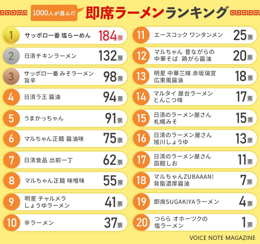 皆さんの好きな即席ラーメンはランクインしましたか?