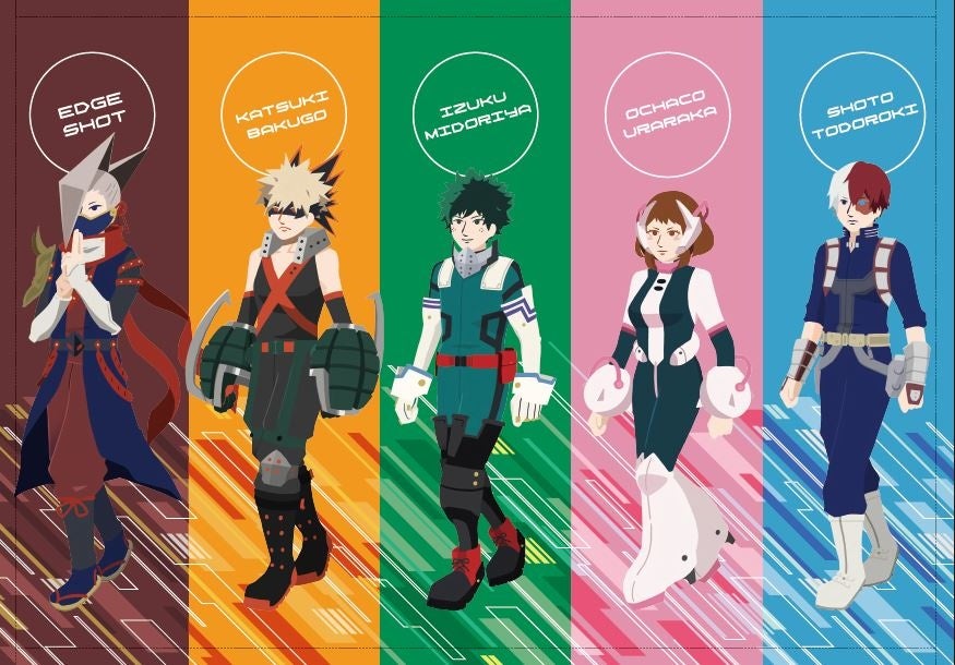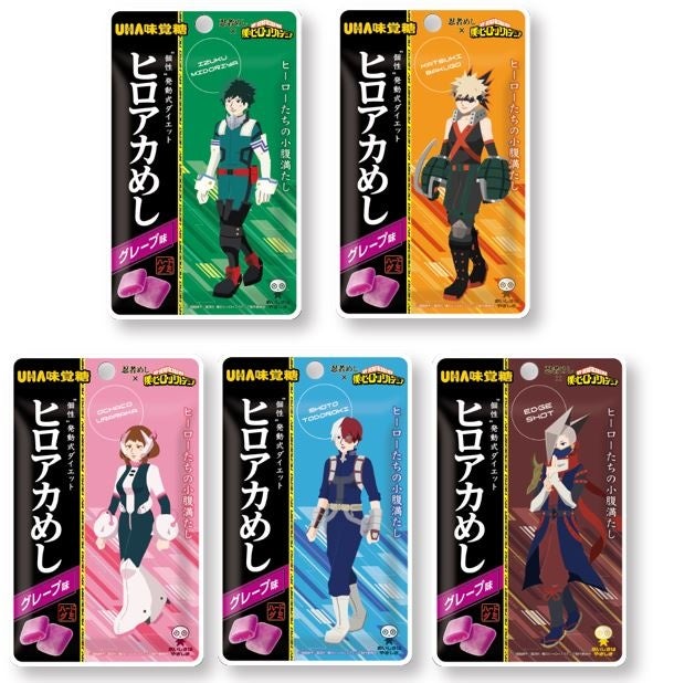 「忍者めし」テイストのイラストで「ヒロアカ」の人気キャラクターが描かれたパッケージ全5種。