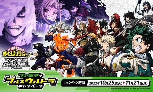 株式会社ファミリーマート(本社:東京都港区、代表取締役社長:細見研介)は、昨年から取り組んでいる5つのキーワードのうち「もっと美味しく」、「『あなた』のうれしい」の一環として、現在毎週土曜夕方5:30から放送中のTVアニメ「僕のヒーローアカデミア」(以下、ヒロアカ)とコラボレーションした『ファミマで「プルスウルトラ」キャンペーン』を、2022年10月25日(火)から2022年11月21日(月)まで開催しております。