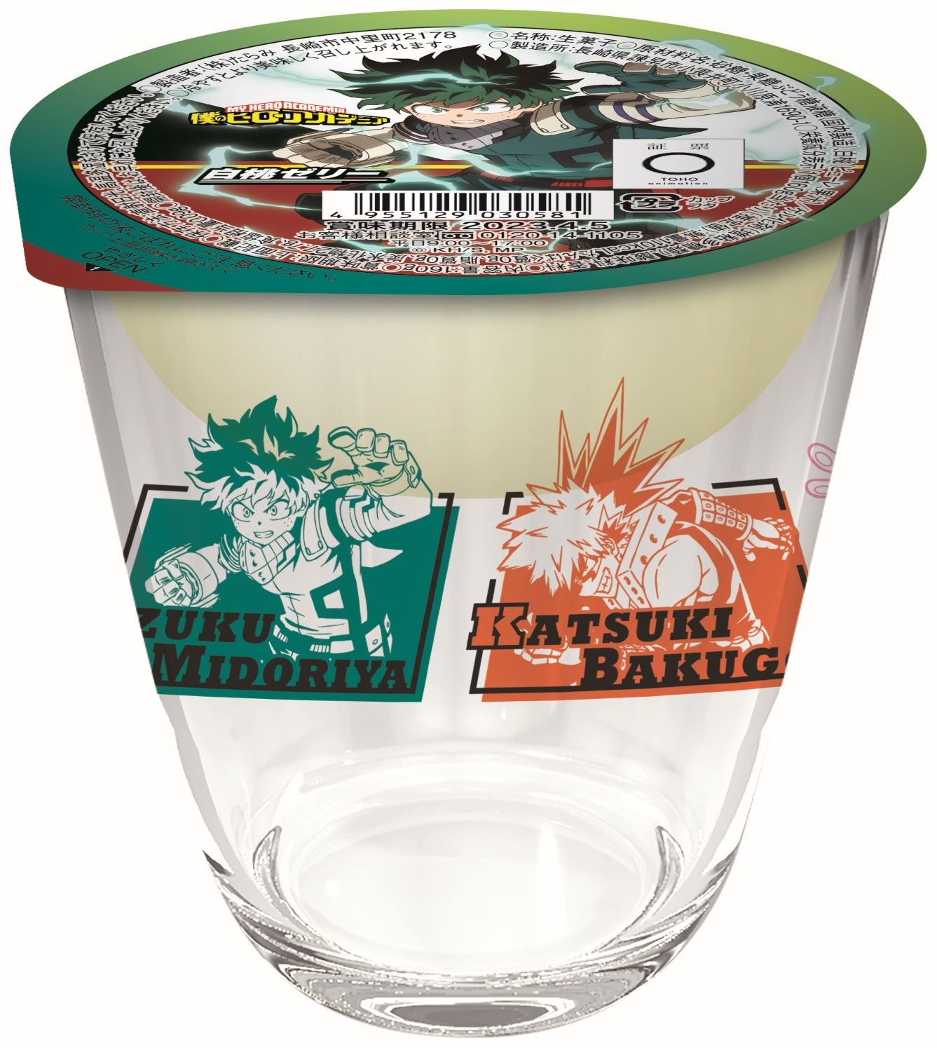 【内容】僕のヒーローアカデミアのキャラクターが描かれたグラス付き白桃ゼリーです。デザインは全2種です。