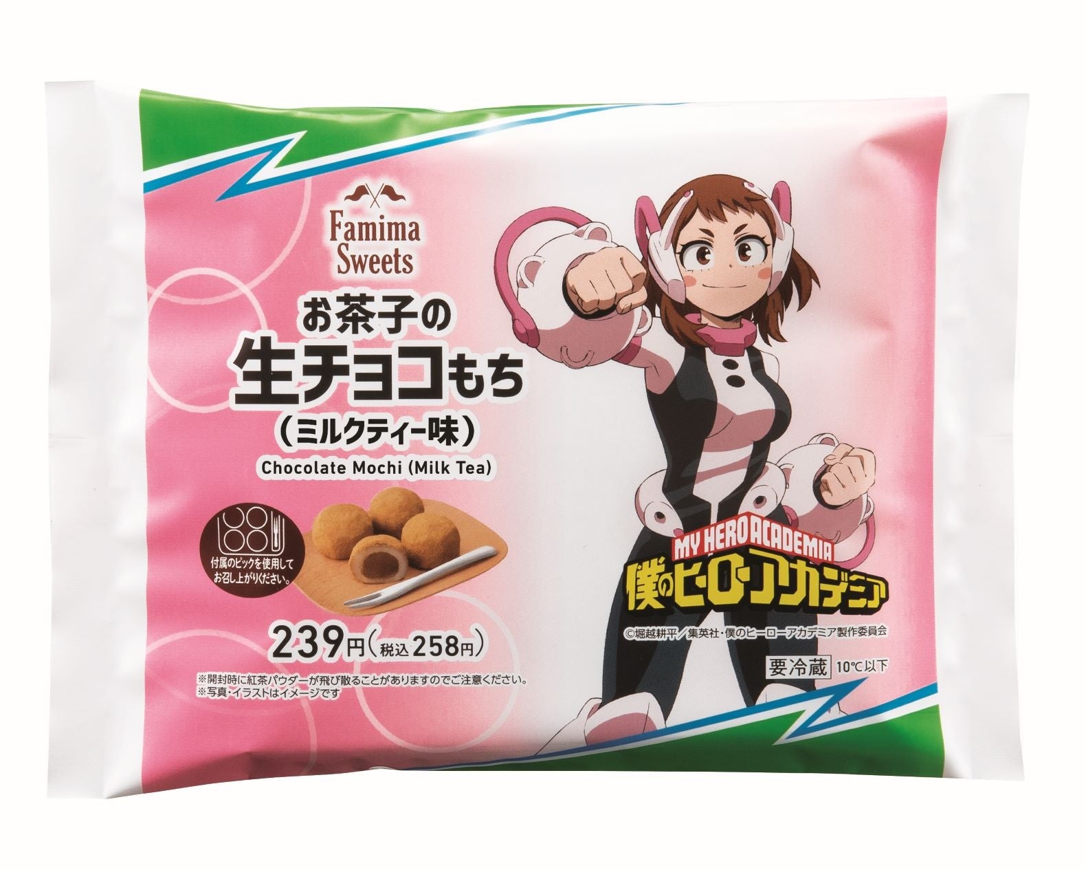このたび発売となる第2弾のコラボ商品は、「お茶子の生チョコもち(ミルクティー味)」や、「轟のミルククリームドーナツ(ホワイトチョコ&いちごチョコ)」など、スイーツ商品が充実しております。作品内で登場する雄英高校の生徒やヒーローたちをイメージした、プルスウルトラな商品を是非ご堪能ください。