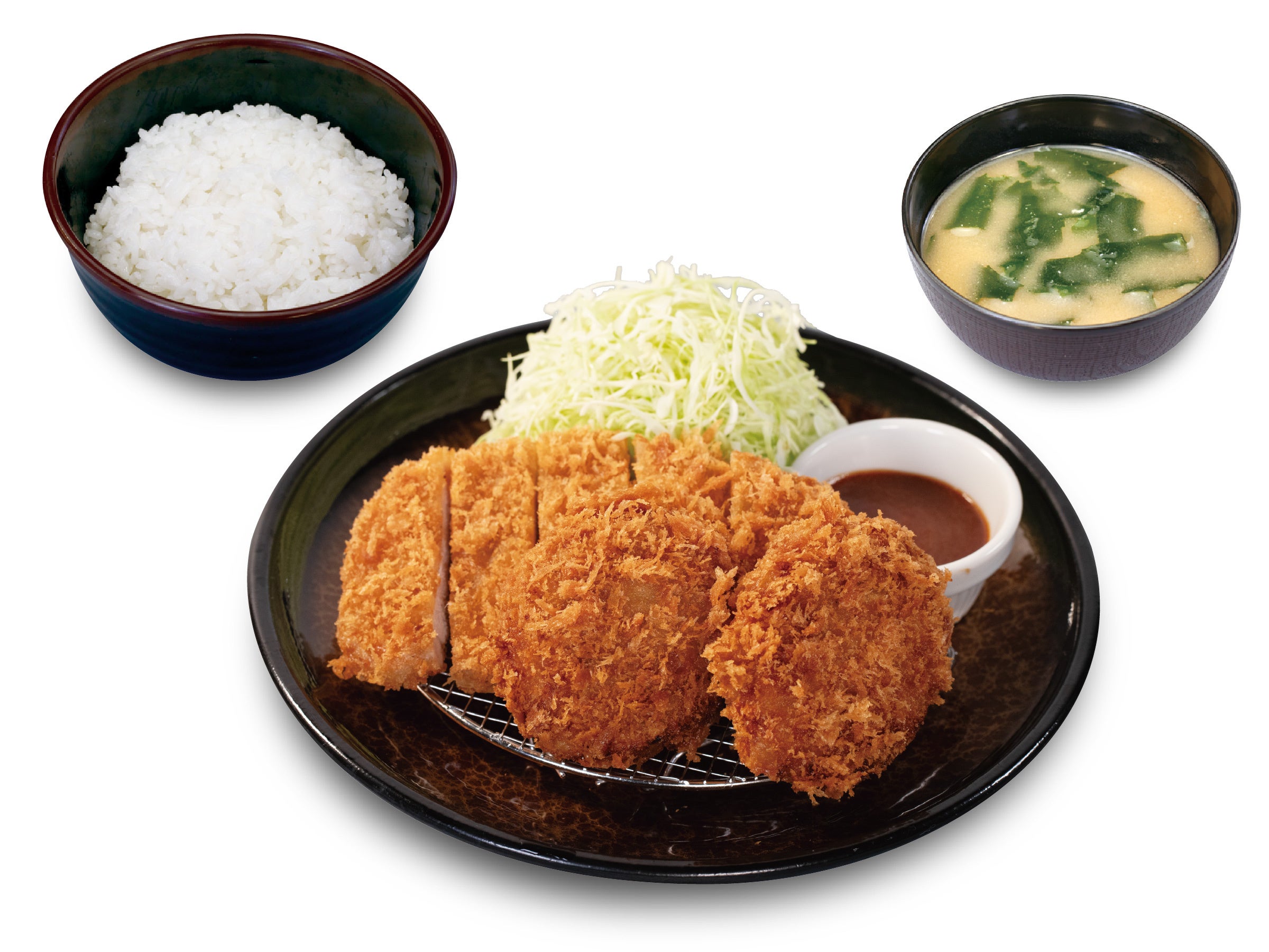 ロースかつ&国産黒毛和牛×国産ブランド豚肉入りメンチかつ定食(1枚)1090円(2枚)1390円