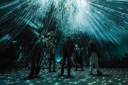 会場内は、生物の多様性をキーワードに「LIGHT WILL FIND YOU」、「MEMORY OF WATER」、「INVISIBLE」、「FOREST FREQUENCIES」の4つの体験ゾーンで構成され、子供からお年寄りまで、年齢や国籍を問わず、幅広い方々に体験いただける内容となっています。