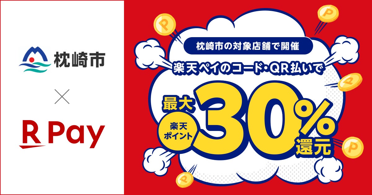 楽天ペイメント株式会社(以下「楽天ペイメント」)は、運営するキャッシュレス決済サービス「楽天ペイ」において、鹿児島県枕崎市が2026年2月1日(日)から2月28日(土)まで実施する「枕崎市キャッシュレス キャンペーン第5弾」に参加することをお知らせします。