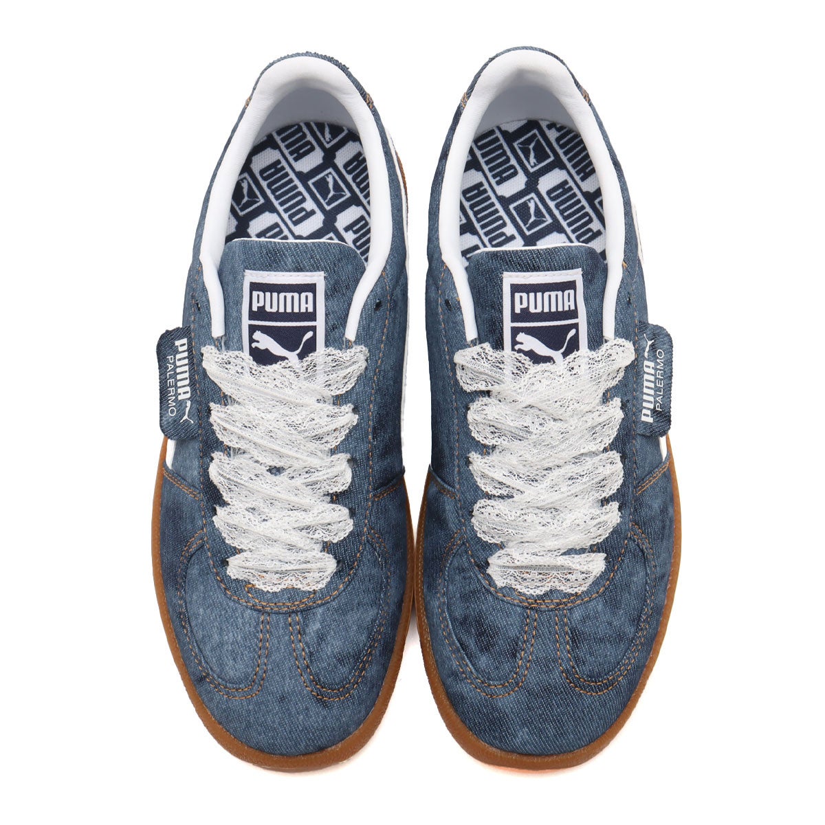 本作はPalermoの美しい海から着想を得て、海面のような濃淡のあるデニムをアッパーに採用。スペアシューレースを白色のレース素材にすることで、インディゴブルーのデニムとレースの掛け合わせが海岸に打ち寄せる波を彷彿とさせるデザインになっています。