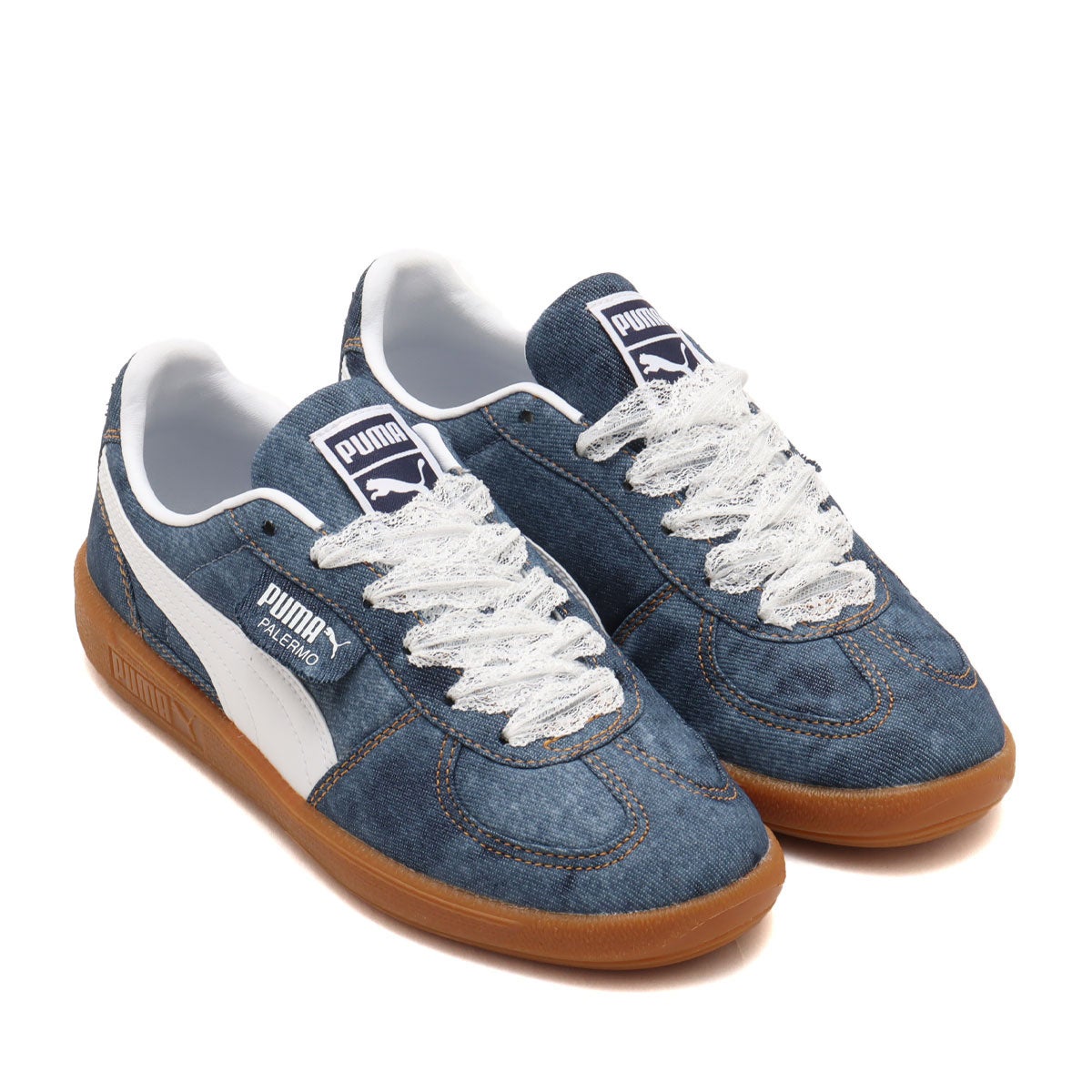 atmos pinkはPUMAの人気モデル”Palermo(パレルモ)”にトレンドのデニムとレースを掛け合わせた別注の「PALERMO ATMOS PINK」を発売いたします。