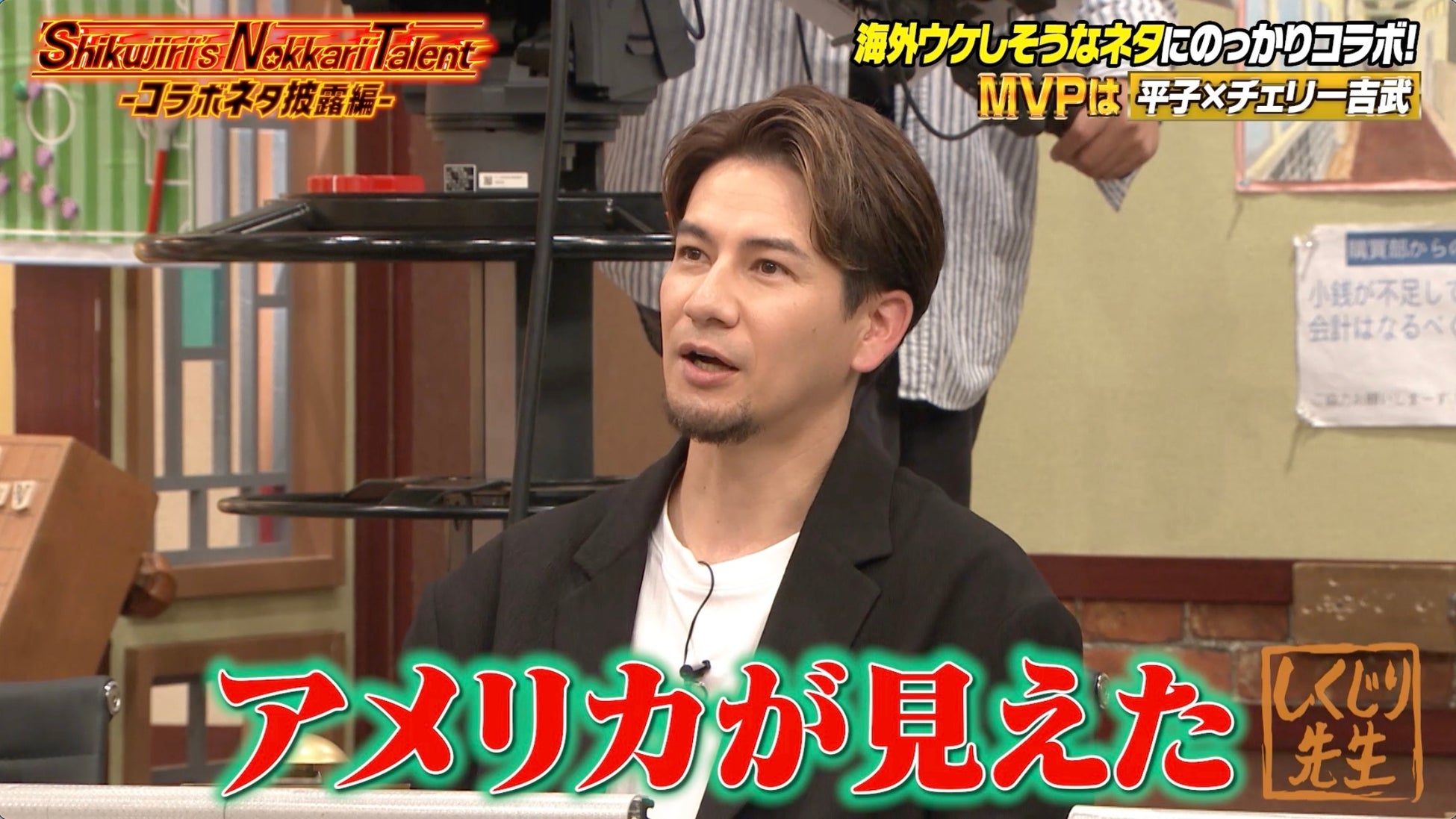 また、チェリー吉武さんとコラボした平子さんは、雄叫び上げたり、“ヒラコ”コールを煽ったりとスタジオを盛り上げながら、お尻を使った芸に挑戦。練習では一度も成功しなかったという荒技を見事成功させ、一同大盛り上がりの展開となりました。審査員のJOYさんは、平子さんの頑張りが心に響いたとコメントし、「アメリカ行きのチケット渡したいぐらい」と称賛を送りました。
