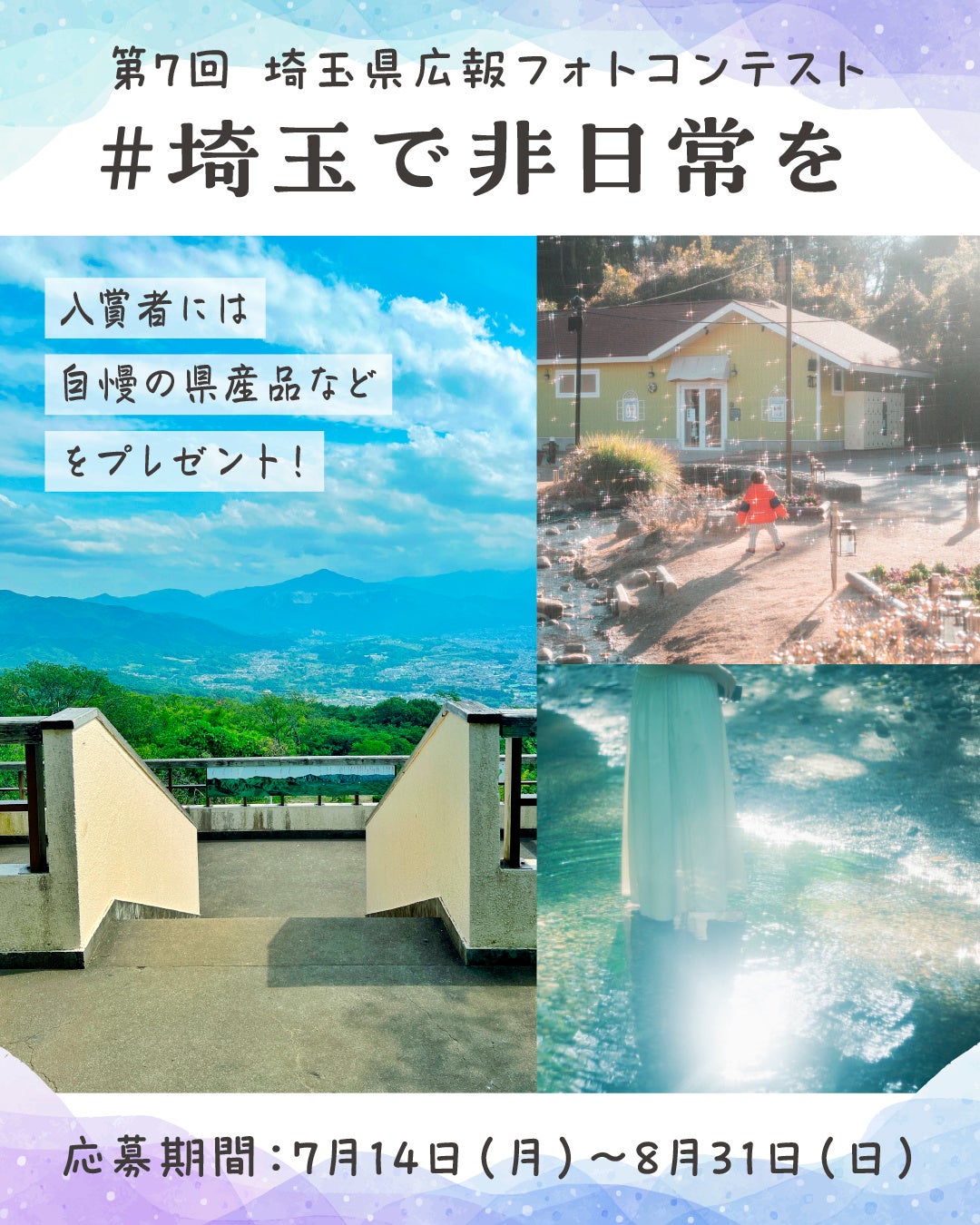 埼玉県では、県の魅力を発掘・発信するための「第7回埼玉県広報フォトコンテスト」を開催いたします。今回のテーマは「埼玉で非日常を」。皆さまの楽しい思い出エピソードなどとともに、埼玉で非日常を感じた瞬間を切り取った写真をお待ちしております。