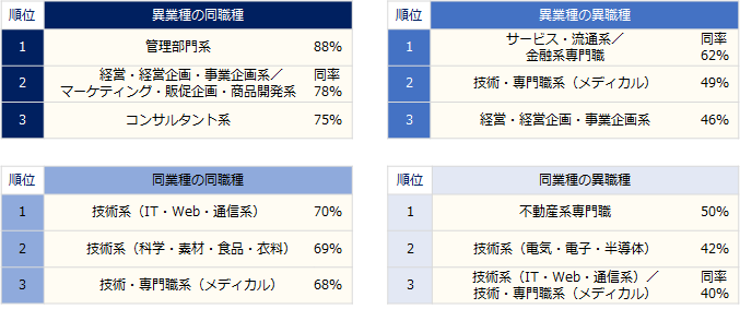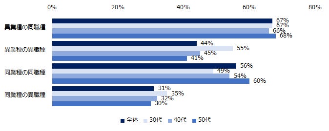 ★ ミドルに人気の転職先、第1位は「異業種×同職種」。現在の職種別で、転職軸も異なる結果に。