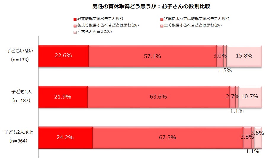 1.男性の育児休業取得について「取得するべき」87.5%/子どもの数別比較
