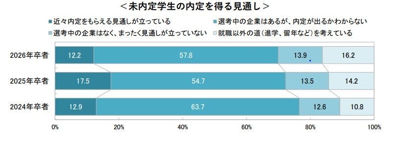 ○「内定獲得の見通しが立っている」12.2%。未内定者の大半はこれから