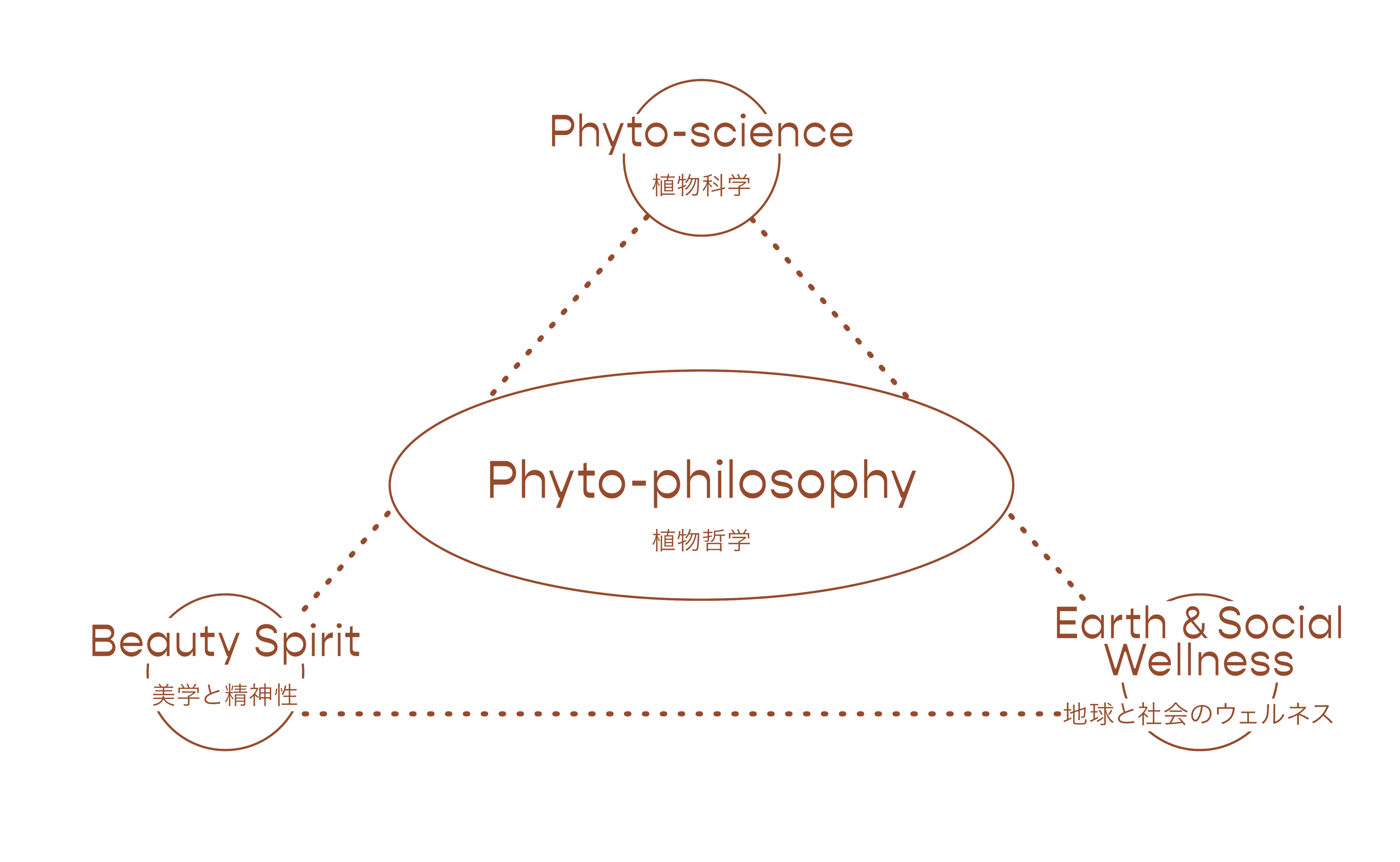 コンセプトに3つの「Phyto-philosophy (植物哲学)」掲げ、ワイルドな植物が自生するために備えた、えぐみ、色素、クセのある香りに着目。 植物のちからを最大限に活かし、肌本来の強さと美しさを引き出します。