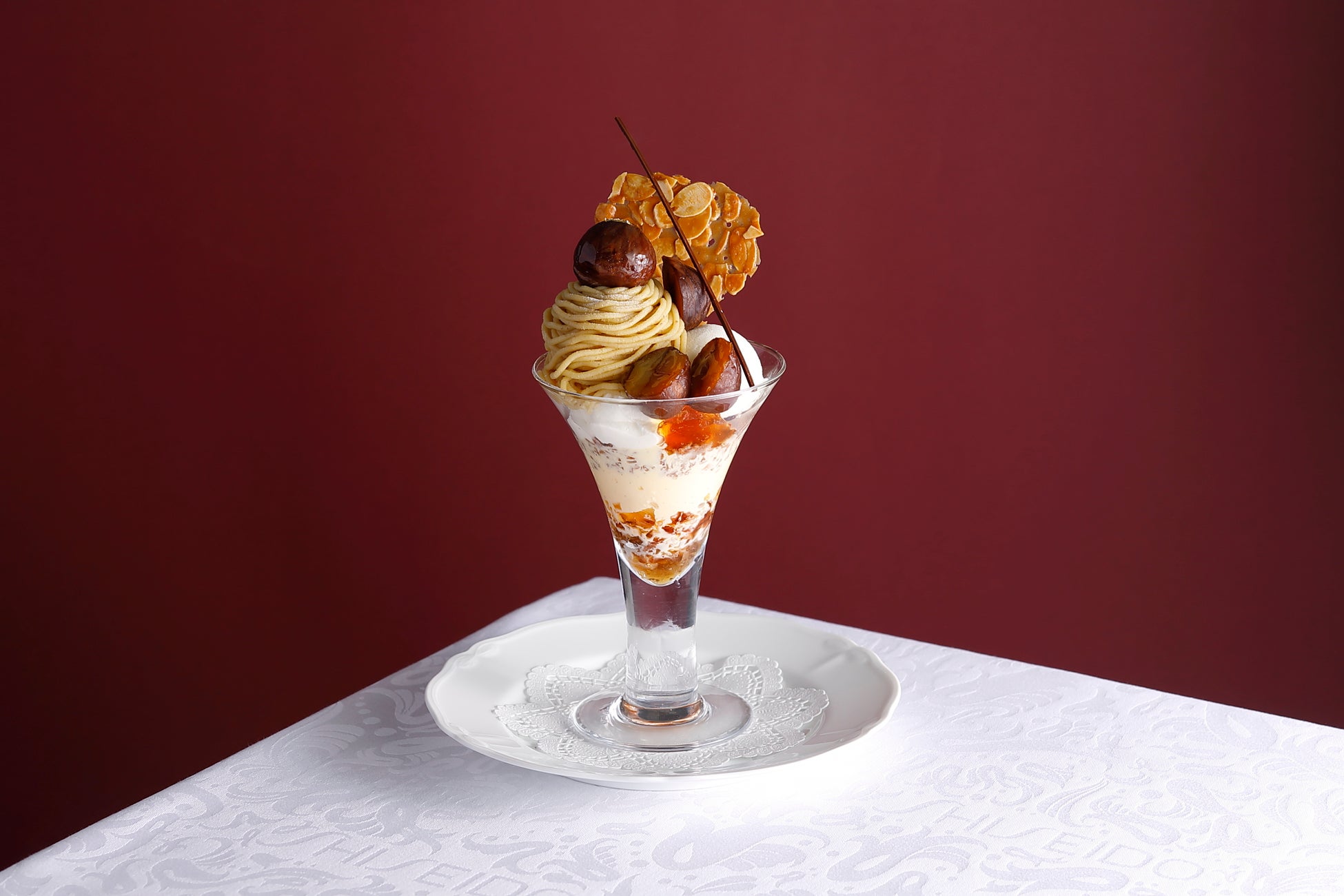 大粒で濃厚な和栗を主役に、アイスクリーム、マロンクリーム、生クリームなど厳選された素材を使用したパフェです。アールグレイのゼリーやフィアンティーヌが食材の魅力を引き立てます。