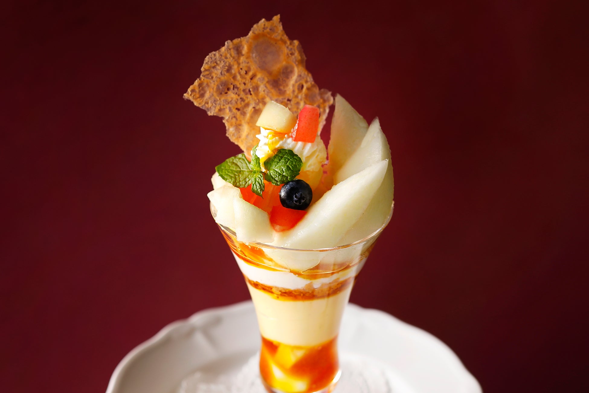大人な味わいのラム酒のトリュフや爽やかな赤ワインのソルベ、ブラックベリー、ラムレーズンとラ・フランスのマーマレード、キャラメルソースなど、旬のラ・フランスの美味しさを引き立てる食材を贅沢にデコレーションしています。パフェとは違ったラ・フランスの美味しさをご堪能ください。
