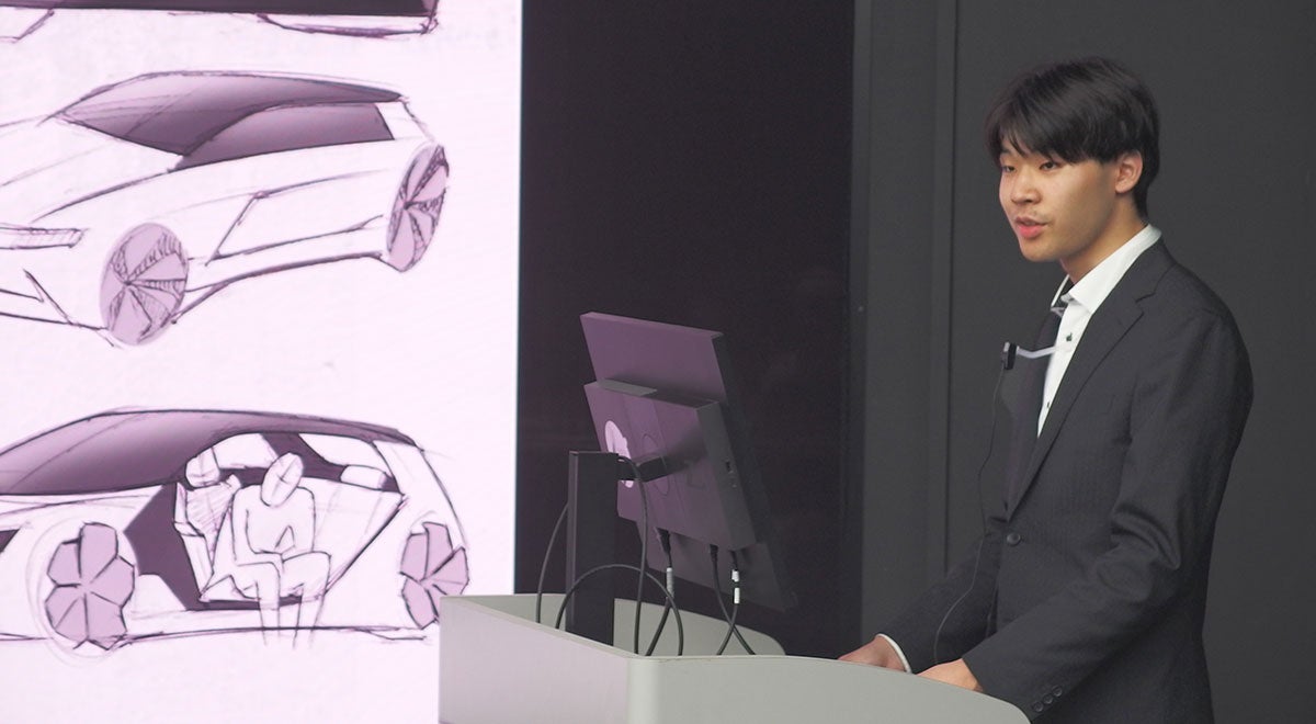 講評:お客様の生活に寄り添った提案をしていただきました。スポーツやライブで感じられるような集団の一体感をそこへ向かう移動の時間から楽しめるというストーリーにとても共感出来ました。小さなモビリティはインテリアや乗り降りの仕方も重要だったと思いますが、よく考えられていると思います。