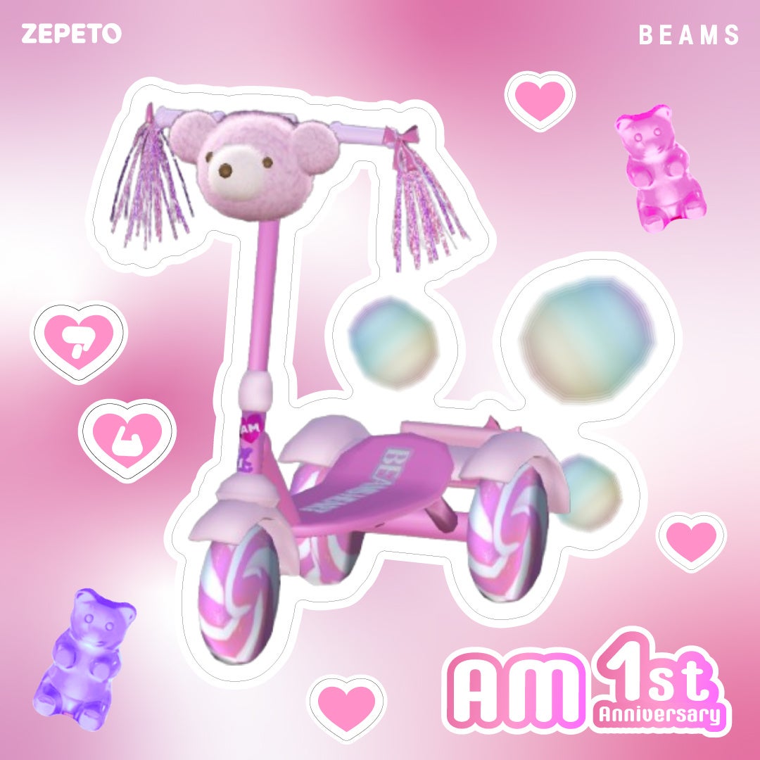 ビームスは『ZEPETO』に初登場した2023年2月に、日本のファッション企業として初めて『ZEPETO』の人気クリエイターと共同で制作したアプリ内で楽しめるアバター用ファッションアイテムを発表し、これまで計20点のアイテムをリリースしてきました。初登場から1周年を迎える今回は、ビームスの創業地である東京・原宿がテーマです。カラフルなキャンディーやわた飴、そこへ過去のコレクションでもキーアイテムとして度々登場してきた“クマ”のモチーフを加えた、メモリアルなアイテム計4点が登場します。初コレクションからアイテム展開をしてきた、クオリティにこだわりながらビームスのフィルターを通した"トレンド"を提案するレーベル〈BEAMS HEART(ビームス ハート)〉と、『ZEPETO』の人気クリエイター・SASAKI、jackそれぞれとのコラボレーションで制作し、ビームスの『ZEPETO』公式モデルAM(アム)がユーザーと共に楽しみながら、ビームスならではのバーチャルファッションを提案します。