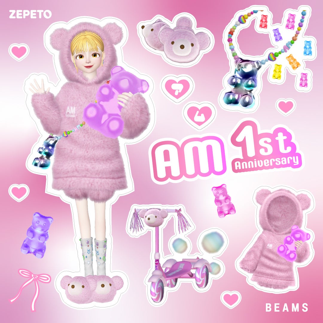 株式会社ビームス(本社:東京都渋谷区、代表取締役社長:設楽洋)は、NAVER Z Corporation(本社:韓国、共同代表:キム・デウク、キム・チャンウク、以下NAVER Z)が運営する、全世界で4億人以上のユーザーが参加するアジア最大規模のソーシャルプラットフォーム『ZEPETO(ゼペット)』にて、初登場から1周年を記念し、アプリ内で楽しめるアバター用ファッションアイテムとして〈BEAMS HEART(ビームス ハート)〉と『ZEPETO』の人気クリエイター・SASAKI、jackの2名がコラボレーションし制作した『AM 1st Anniversary』を2月28日(水)11時00分より販売します。ビームスの創業地である東京・原宿をテーマに、過去のコレクションで度々登場した“クマ”のモチーフを落とし込んだメモリアルなアイテム計4点が登場。また、1周年を記念し、期間限定で今回のコレクションを“1ZEM(アプリ内通貨)”で販売し、その他ビームスが販売する全アイテムを含む期間中の販売収益のうち、経費を差し引いた全額を『令和6年能登半島地震』被災地支援として寄付します。