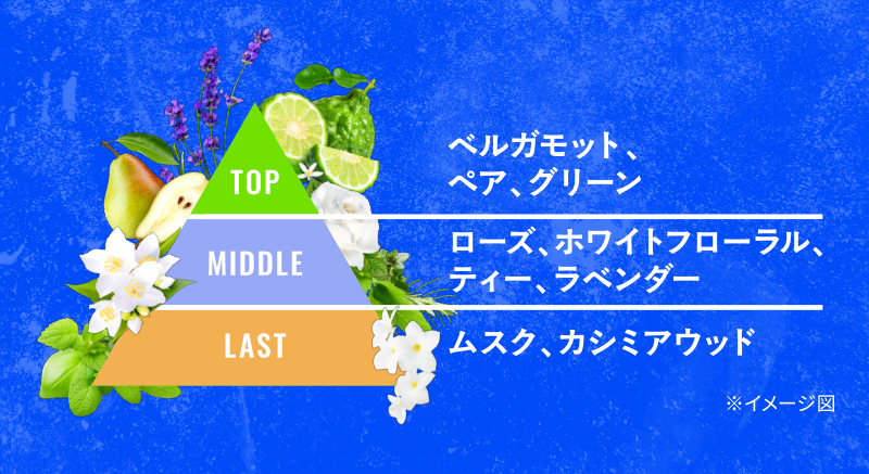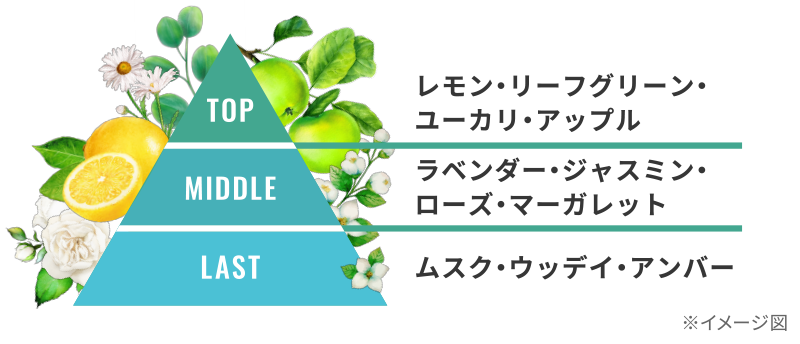 汗ばむ嫌な頭皮臭をライトフローラルの香りでマスキング。日常使いしやすい香りです。