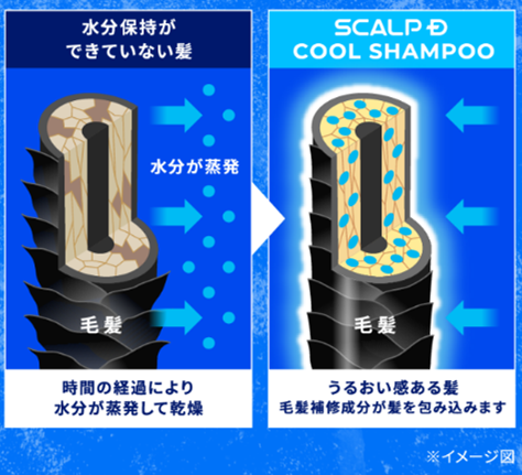 夏の暑さや強い日差しによる髪・頭皮ダメージ※13をケア。水分保持に着目した毛髪補修成分「エクトイン」を配合し、乾燥によるパサつきを抑え、髪にうるおいを与えます。