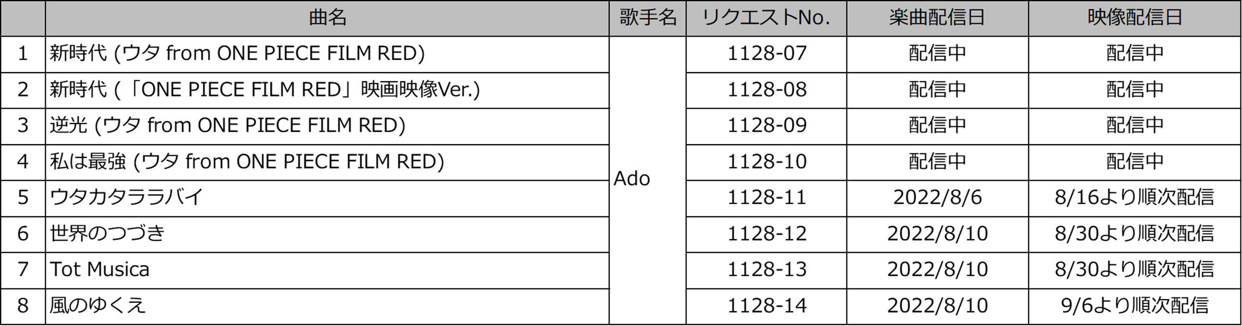 歌唱曲 :ONE PIECE FILM RED 映画主題歌・劇中歌(全7曲)