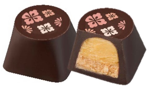 アプリコットガナッシュとフィユティーヌとライスクリスプの食感が楽しいアーモンドプラリネをダークチョコレートで包みました。クリスピーな食感とアプリコットの甘酸っぱさが口の中で広がるひと粒です。