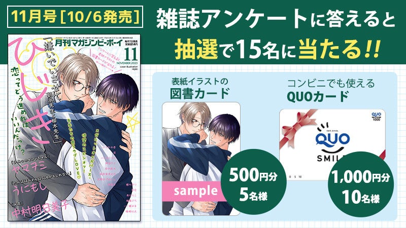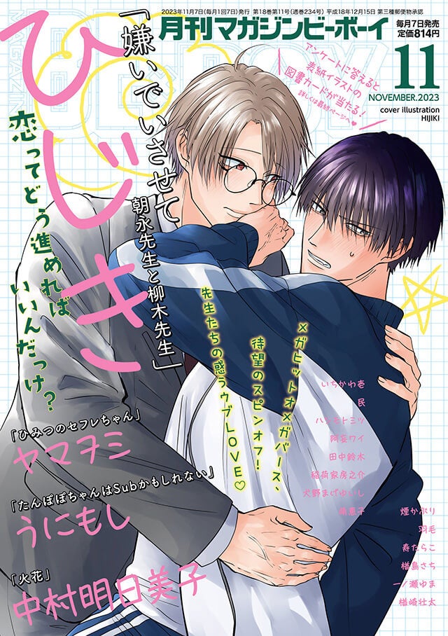 【本日発売】メガヒットオメガバース「嫌いでいさせて 朝永先生と柳木先生」(著:ひじき)が表紙で登場!マガジンビーボーイ11月号は10月6日発売!