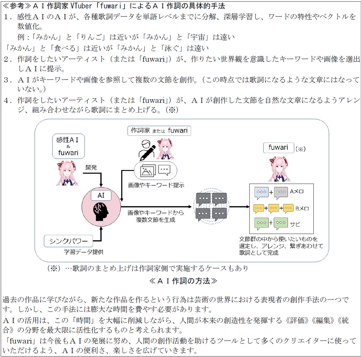 ●クリエイティブAIによる歌詞生成について