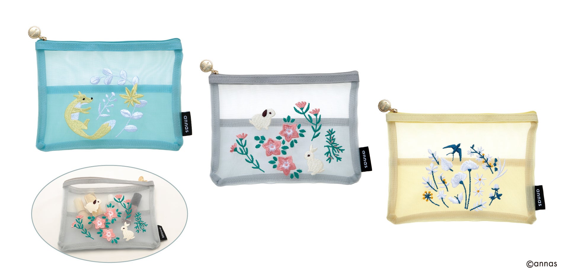 annas 刺繍メッシュポーチ 全3種類 税込価格1,650円