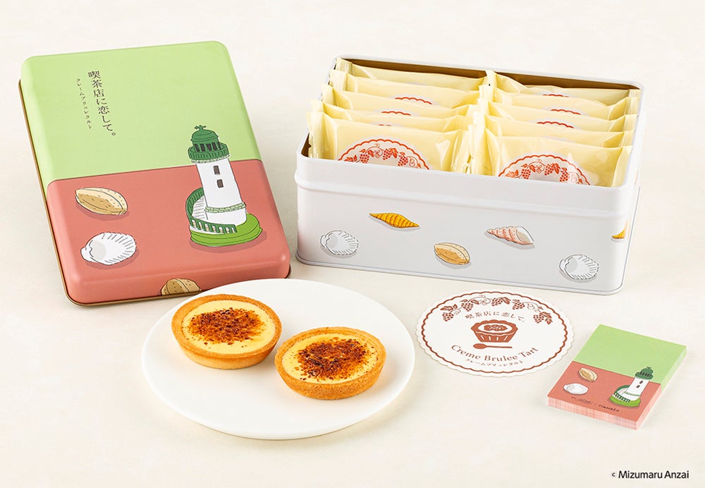 雑誌「Hanako」の人気特集から誕生した東京スイーツブランド「喫茶店に恋して。」。「みんなが贈りたい。JR東日本おみやげグランプリ2020」で菓子部門賞に輝いた代表作『クレームブリュレタルト』に、期間限定のイラスト缶が登場します。